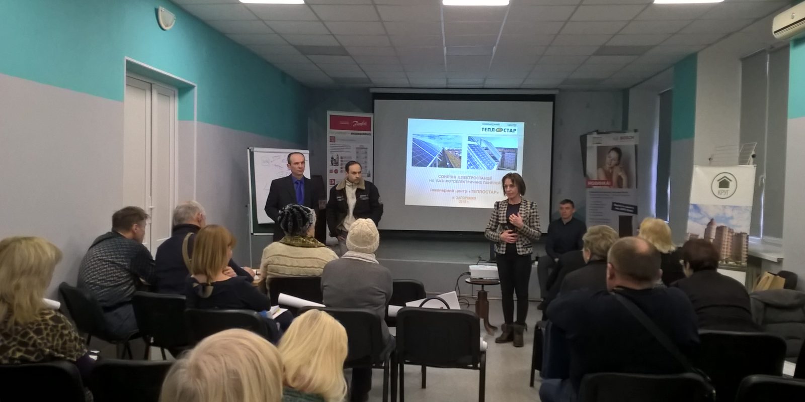 Представники ТЦ «ТЕПЛОСТАР» надали інформацію про нові альтернативні технології здобуття електрики для освітлення під’їздів. Але найбільшу зацікавленість викликала інформація щодо альтернативного джерела гарячого водопостачання для будинку. Присутні на семінарі погодилися, що ця пропозиція хоч і досить «сира» для практичного застосування у багатоквартирному будинку, але заслуговує на роздуми.
